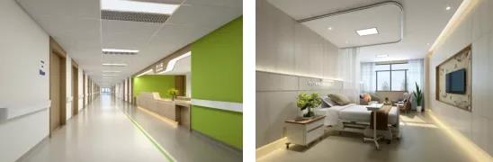 主要包括護士站、診室、治療室、病房及病房衛(wèi)生間等區(qū)域,這些區(qū)域在平面布局上注重便捷的功能排布;在裝飾材料選擇上要注意具備吸音降噪、抗菌耐污、耐擦洗的特征;在采光照明上要求防眩光、高顯色,注意漫反射光與直接照明相結合。