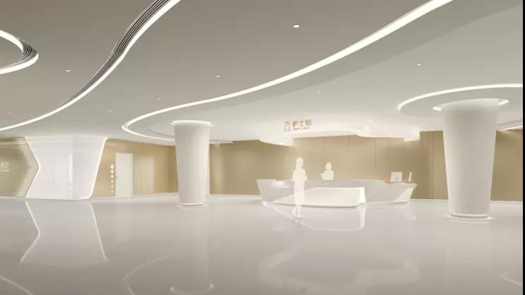 公共空間尊貴感體現(xiàn)首先在于設計選材,宜采用天然高檔大理石、覆膜木紋鋁復合板,紋理質感好,板幅大,品質感強;家具選擇偏向于酒店化,提升空間檔次感,整體色調(diào)溫馨柔軟,加強去醫(yī)療化的體驗感;在門診大廳、腫瘤中心門廳、體檢門廳、電梯廳等區(qū)域,層高配合為3.8米以上,空間大氣檔次感強;在咨詢、導診臺設無障礙區(qū)滿足不同人群,提升服務體驗感。