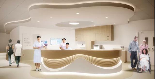 同樣要重視5G及智能化設計的應用,使用智能呼叫系統(tǒng)和智能診療設施;在科室墻面使用診室屏、分診屏,實時顯示醫(yī)患信息;在病區(qū)走道進行燈光分時段、分人流智能設計,實時調(diào)節(jié)明暗;病房內(nèi)可進行VR手術觀看,了解治療過程,避免恐懼感;在門診藥房區(qū)域使用全自動發(fā)藥機,實現(xiàn)藥品儲存自動化、管理智能化、快速發(fā)放無差化。