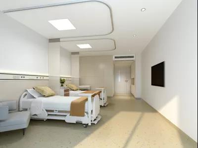 科室空間要根據(jù)科室的功能需求進行設計,在護士站要設置母嬰室、陪護等候區(qū)、直飲水區(qū);在產(chǎn)科、病房的選材、選色和燈光設計上盡量家庭化,還宜設置愛屋、母嬰同室等,而手續(xù)辦理區(qū)域宜使用木色HPL板營造溫馨環(huán)境;在骨科病房及病人長期仰臥的病房內(nèi),要注意避免強炫光設計,液晶電視進行懸掛,適合臥床觀看;在兒保區(qū)域優(yōu)化等候區(qū),可以增設投影墻或互動屏,通過影像互動吸引兒童注意力,消除緊張情緒;在老年人、殘疾人或心腦血管康復病人的病房及其衛(wèi)生間內(nèi),應距地面H=300MM高處各增設1-2處緊急呼叫(帶紅繩)鈕作為呼叫系統(tǒng)的補充和完善。