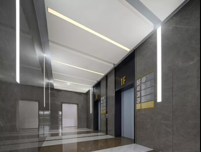 ▲ 圖50 專業(yè)化/尊貴化:綜合樓電梯廳線性燈光氛圍和標識標牌一體化