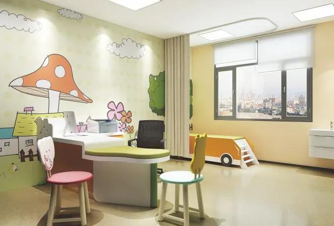 兒科可不設(shè)置二次候診區(qū),但建議在公共候診區(qū)設(shè)置符合院感和安全要求的小型休閑游樂場(chǎng);裝修涂料建材要求綠色環(huán)保,樣式以“卡通”人物或場(chǎng)景為主;診床和家具必須做圓弧處理或加防撞安全保護(hù),診床可選用玩具型家具床;可選擇不設(shè)置隔簾,減少兒童密閉恐懼感。